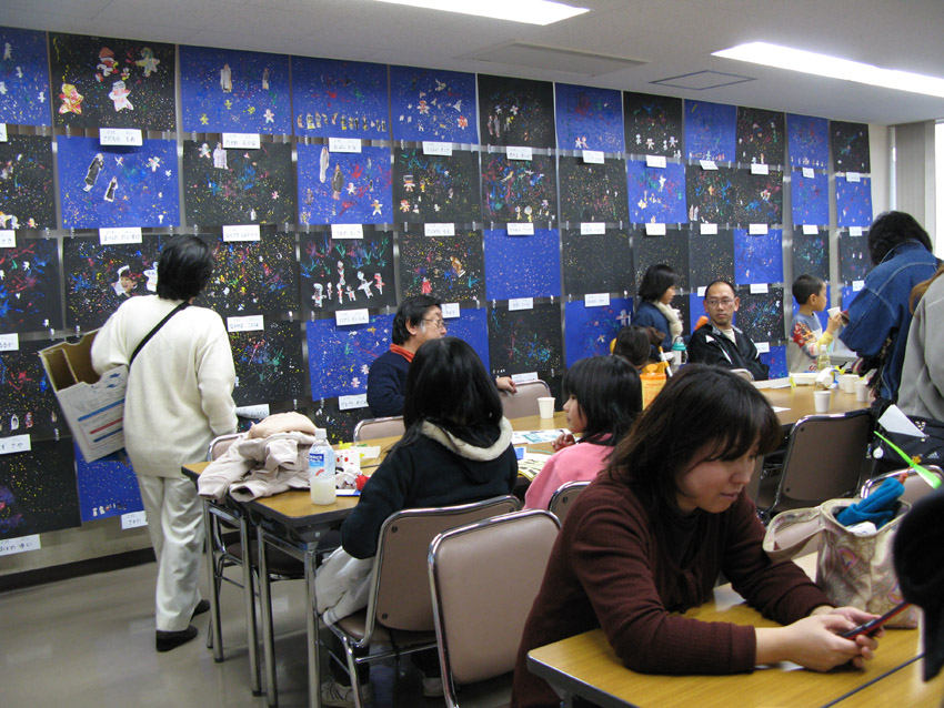 テーマは「星」ということで、ホールには大阪市立科学館によるプラネタリウムや遊牧民の家ゲルがあったり、演奏会も行われていて。ブースには、おじいちゃんおばあちゃんによる昔ながらの遊びや、牛乳パックで紙を作るコーナー、星を釣る星ツリー、けん玉・ベーゴマ遊び、人形劇場など、普段こどもたちがなかなかみる事ができない遊びばかりで、みんな夢中に遊び回っていました。